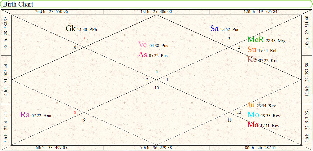 - Placement of Jupiter in Ninth house shows birth of son and increase in charitable deeds.
