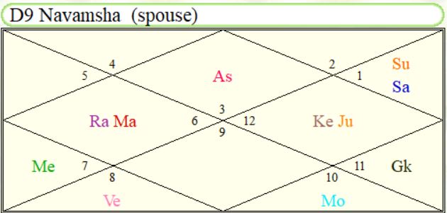 In Rahul Dravid case, 5 and 7th lord (Saturn and Jupiter) don’t have any PAC. When lagna lord and 7th lord are conjunct together one may know marriage partner before marriage. Rahul Dravid at the time of marriage crossed 30 yrs. Rahul Dravid’s 7th lord is combust which could be main reason for more delay in marriage as compared to MS Dhoni.