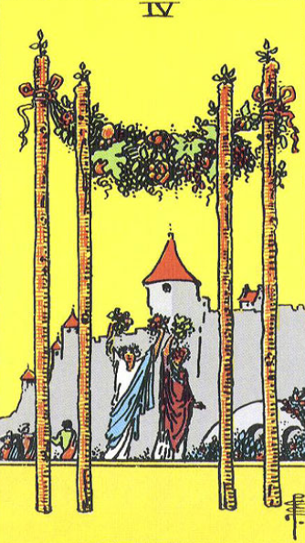 - Four of wands shows place near to some banquet hall.