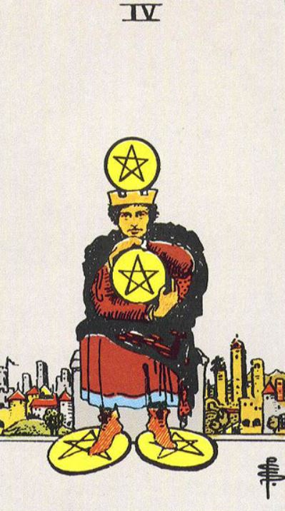 - Here, Four of Pentacles card is the card where one you can see a person is holding on to people, money or possessions.