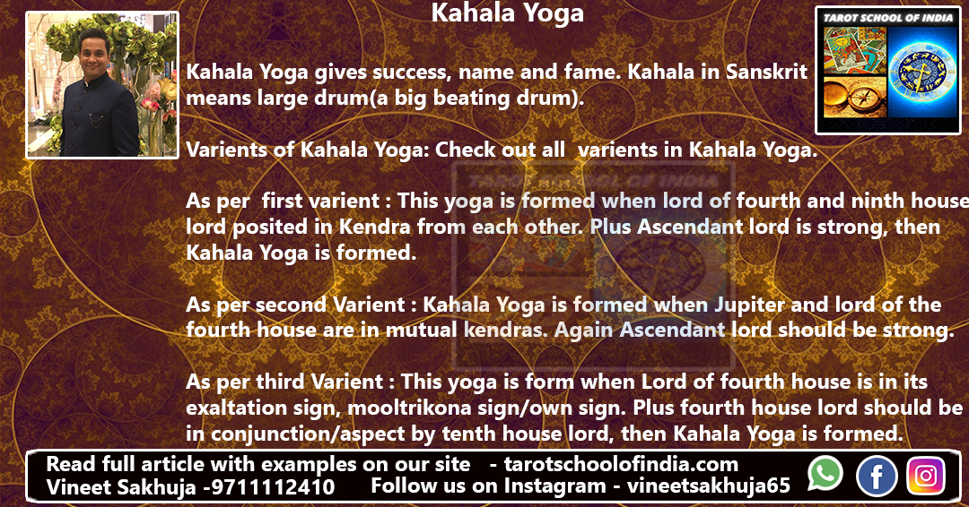 Kahala Yoga is one of the important yogas which which shows success, name and fame. This yoga has two variants. Before, we go to the varients of this Yoga, lets understand the meaning of this Yoga.