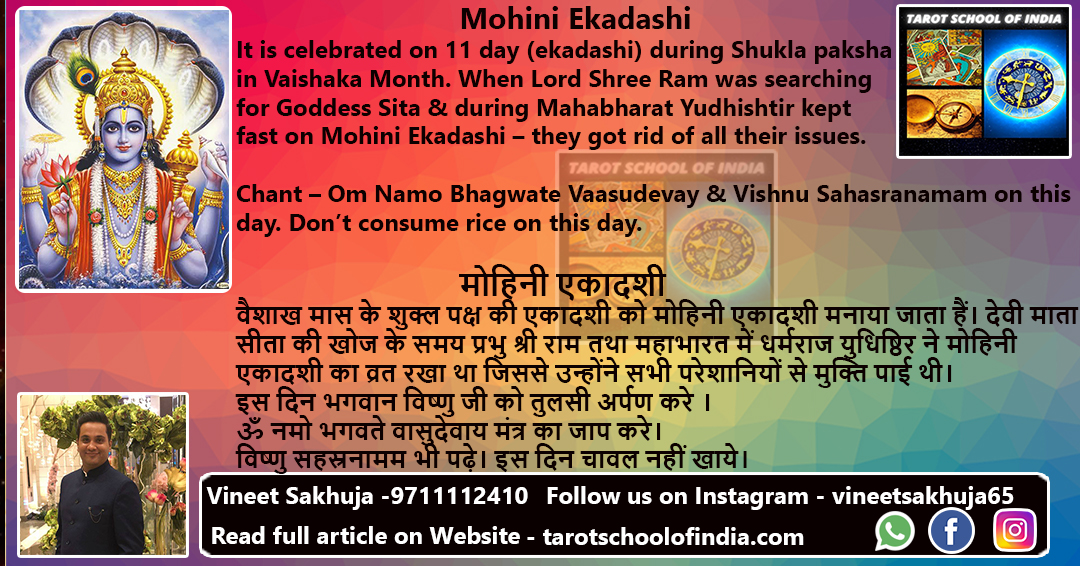 - When Lord Shree Ram was searching for Goddess Sita & during Mahabharat Yudhishtir kept fast on Mohini Ekadashi – they got rid of all their issues.