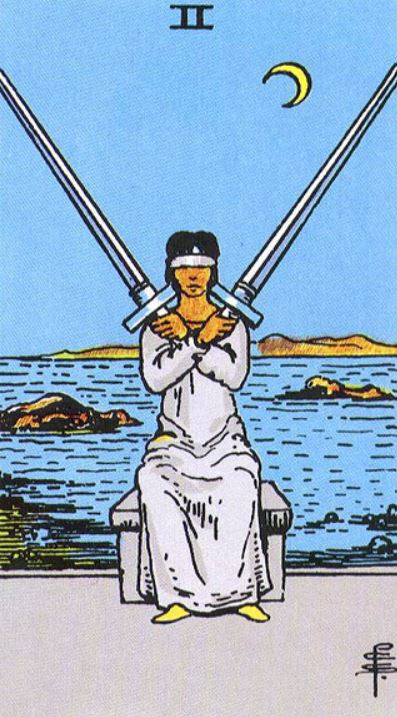Two of Swords card clearly shows defensive attitude.