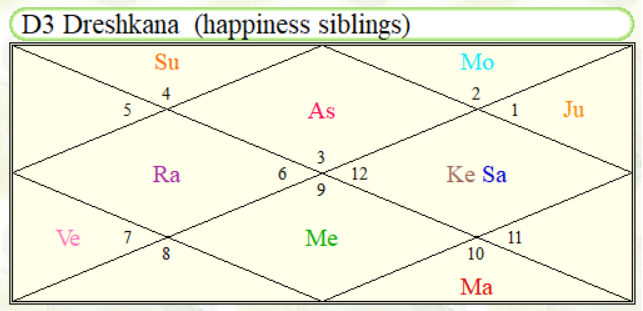 • Here there are benefic planets in Third house, Fifth house and Seventh house