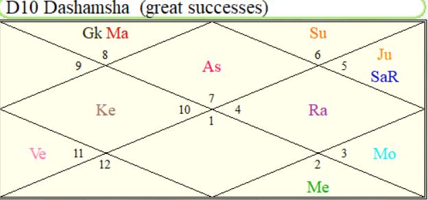 - Saturn is well placed in the eleventh house in Dashamsha Chart.