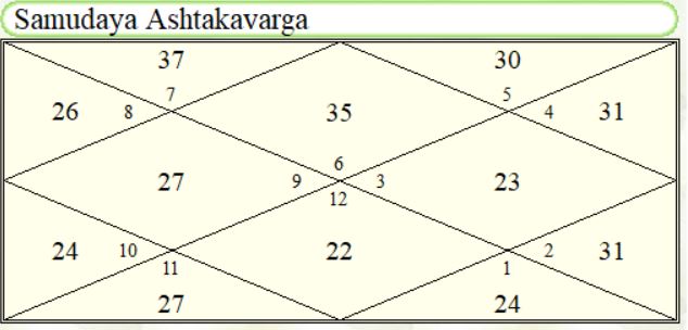 Below i am sharing Samudaya Ashthak Varga Chart of Rahul Dravid. This chart is also vital.