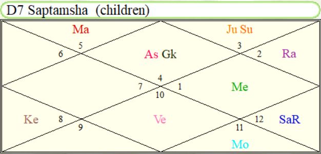 - Ketu in Saptamsha Chart is in the fifth house and in aspect of Mars which is fifth house lord in Saptamsha Chart.